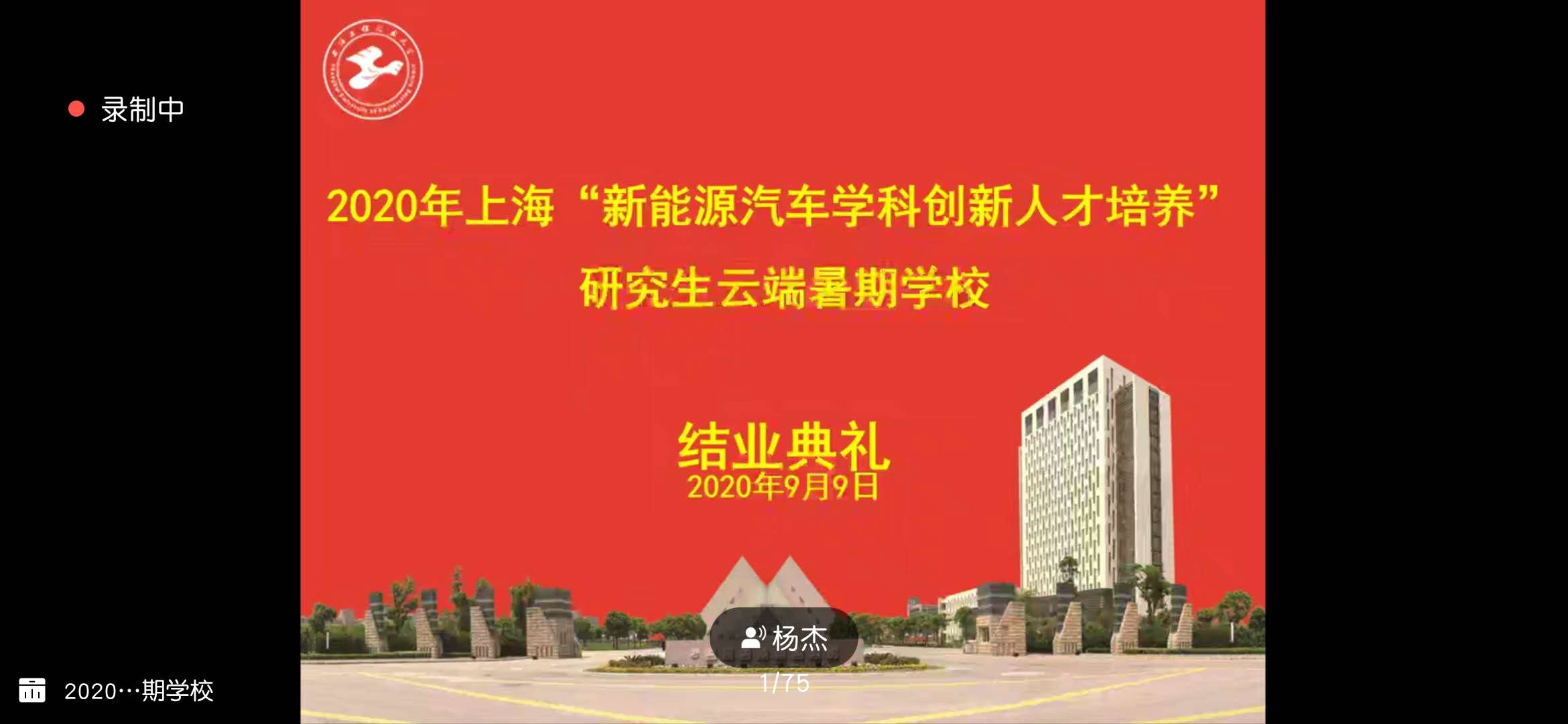 2020年9月9日下午,由上海市学位委员会主办,上海工程技术大学承办的2020年上海“新能源汽车学科创新人才培养”研究生云端暑期学校结业典礼在华为云会议平台直播上如期举行。yl23411永利集团官网副院长崔国华教授、暑期学校全体师生、志愿者共250余人参加结业式。结业典礼由暑期学校教师志愿者、yl23411永利集团官网青年教师杨杰博士主持。