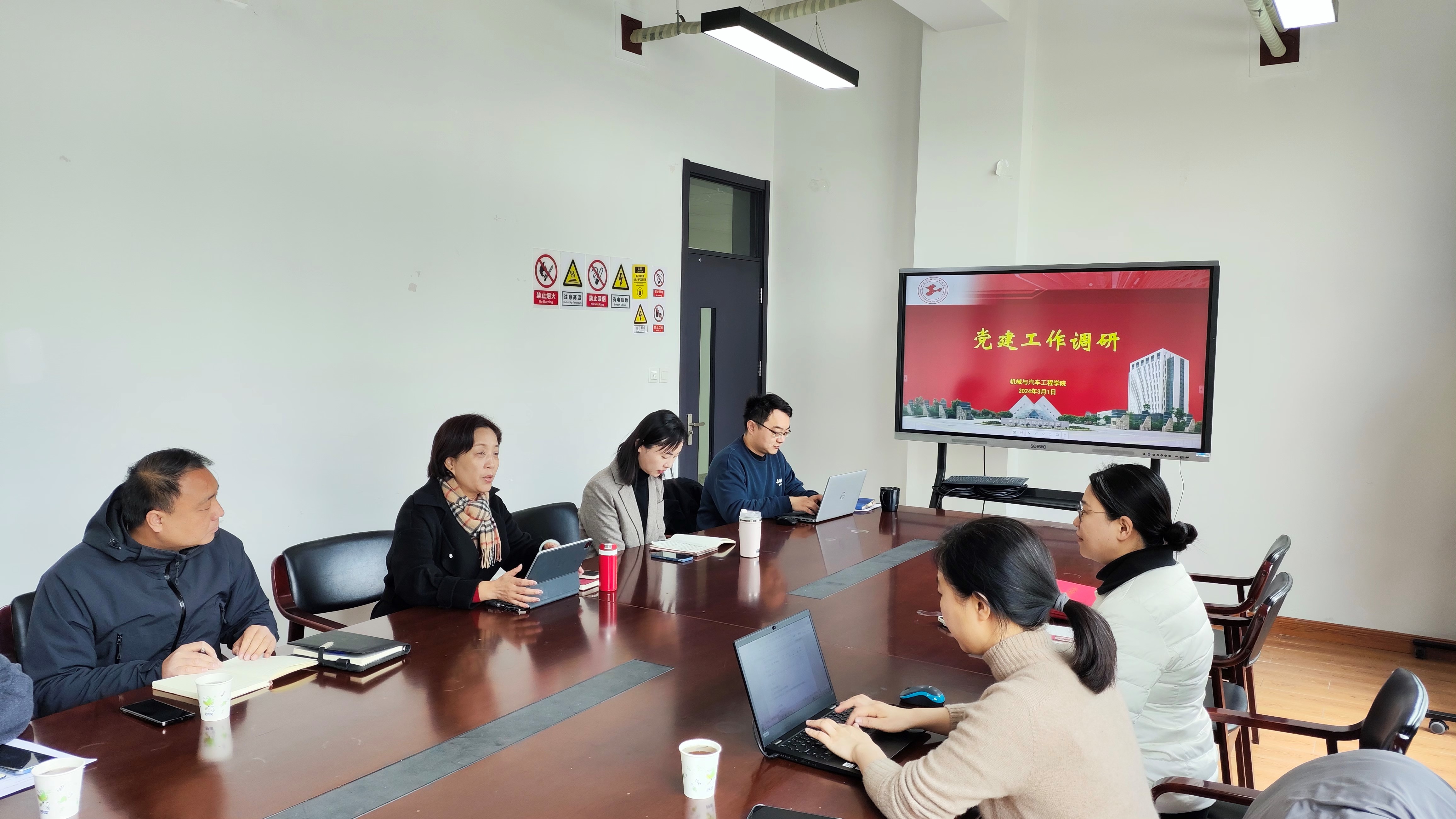 新年新学期开始之际,为促进党建工作高效有序开展,校党委组织部副部长熊伟一行来yl23411永利集团官网调研党建工作。学院党委书记虞蓉、党委副书记黄中子、组织员叶寅及支部书记代表参会。会议由虞蓉书记主持。