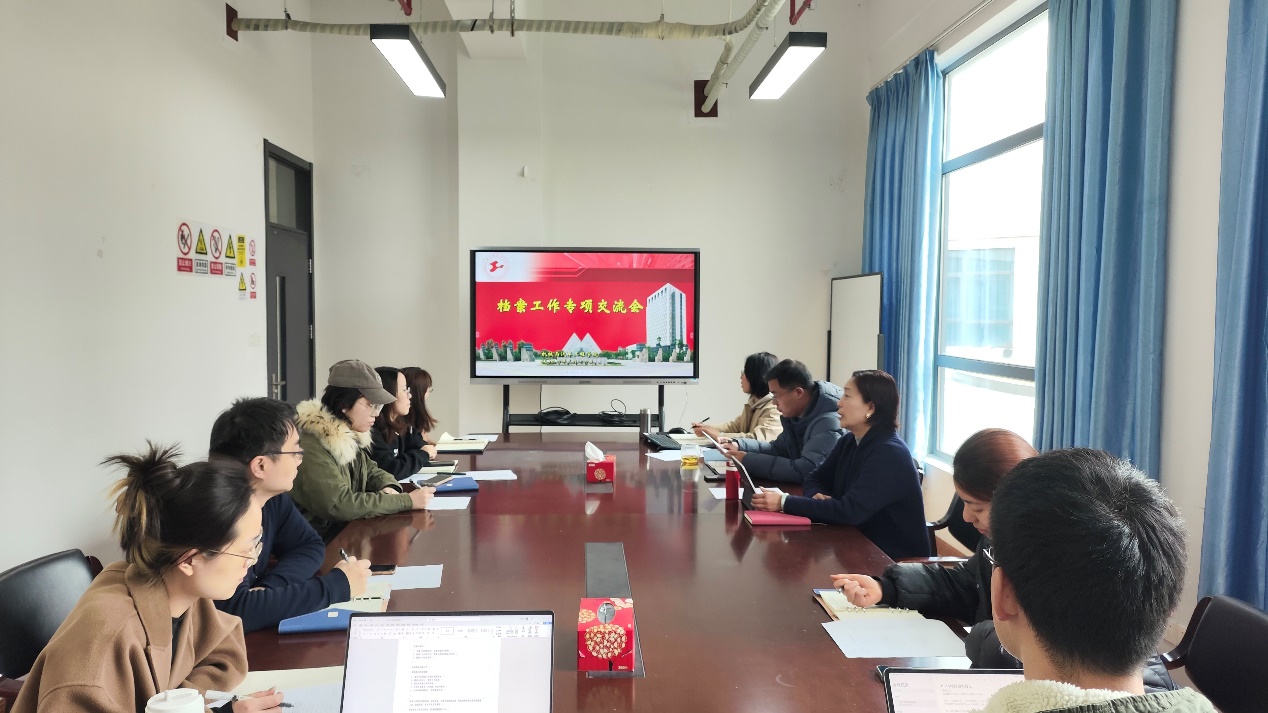 会上,学院党政办副主任杨丽就学院档案工作分工细则进行了讲解,与会成员进行了交流。