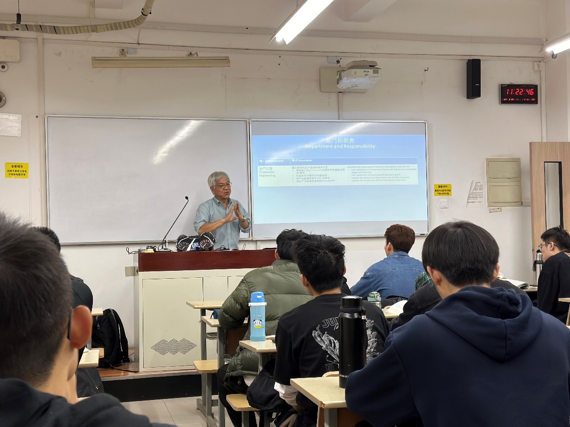为充分发挥产业优势和企业协同育人作用,进一步深入推动汽车电子课程的产教融合实践与探索,325日,汽车工程系邀请威柏电子技术总监钟保荣先生走进课堂,为车辆工程专业大三学生讲授“汽车电子”专业课。