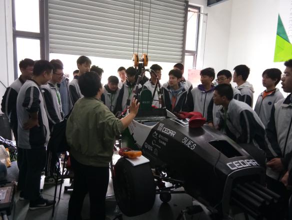 中本班学子不只倾慕工程大的“秀外”,更陶醉于她的“慧中”。工程大作为沪上知名的工科类大学,近年来,工学、经济、艺术、设计等多学科协调发展,已成为教育部“卓越工程师教育培养计划”试点高校、全国地方高校新工科建设牵头单位。在工程大最大的学院之一——yl23411永利集团官网,同学们兴致高昂、认真专注地先后汽车服务工程专业实验室、巴哈赛车工作室、汽车底盘实验室、汽车变速器拆装实验室、汽车电控实验室等。这些设施齐全、设备先进、在上海同类高校领先的系列实验室,令刚“入门”的同学们眼界大开,知识大涨,对汽车专业有了全新认识。