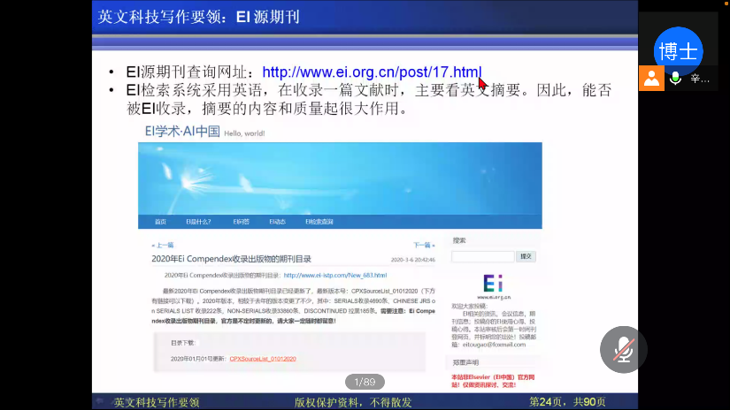 为了提高研究生英文科技写作能力,帮助其发表高水平英文论文、增强国际交流能力,2020年11月20日上午,我院诚邀2020年上海工程技术大学海外名师项目获得者辛千凡教授线上开展题为“Key Techniques of English Scientific Writing(英文科技写作要领)”的主题讲座,有近300名研究生参与讲座。辛教授于美国华盛顿大学获得机械工程硕士、博士学位,现担任美国HXK技术公司主管,英文底蕴深厚,写作技巧精湛。