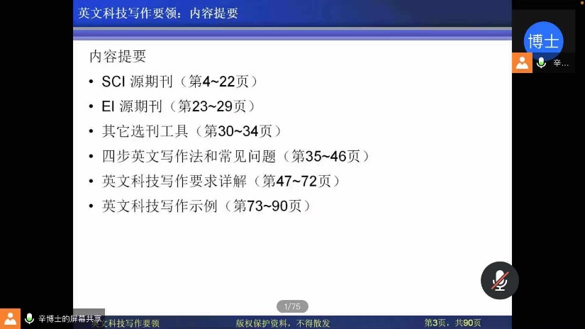 讲座开篇,辛教授指出当代大学生英文写作水平不够,独立完成英文科技文献写作困难等问题,并对症下药从最基础的源期刊讲起,承接选刊工具介绍,引出四步英文写作法以及常见问题,最后结合同学的论文加以修改以便学生学以致用。