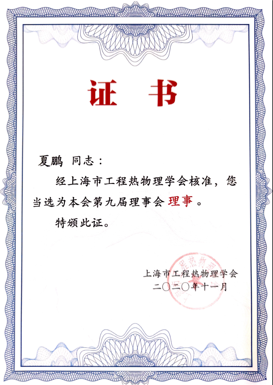 本次会议选举了新一届学会理事会和监事会,永利集团官网yl23411永利集团官网姜小敏教授获聘荣誉理事,夏鹏副教授当选上海市工程热物理学会第九届理事会理事。