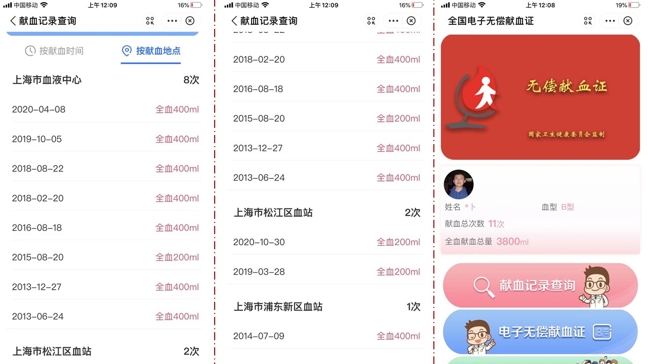 献血11次,累计3800ml