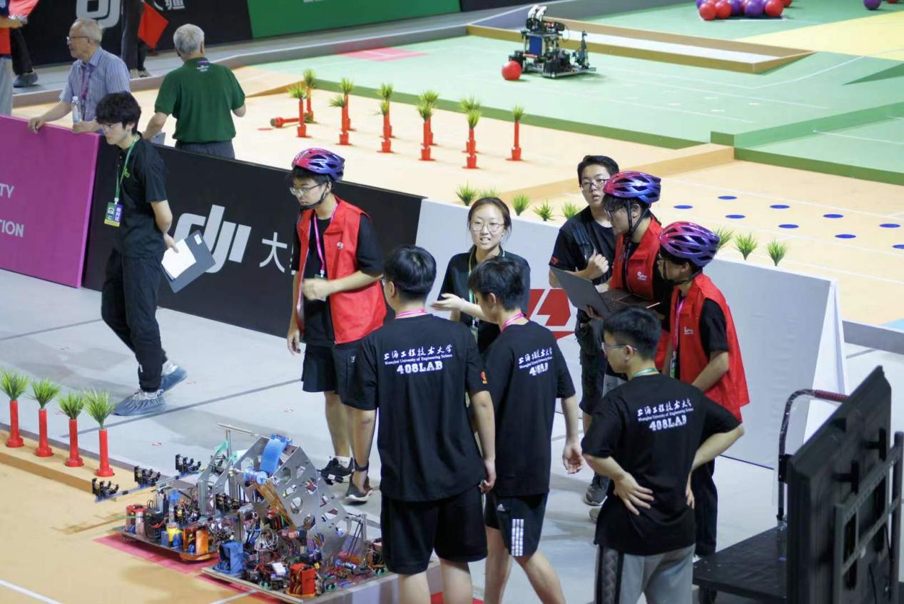 比赛期间,队员们不仅面临技术策略的考验,还要展示出强大的团队协作能力。比赛现场各类突发状况是对机器人的稳定性和适应性的巨大挑战,队员们各司其职在连日的比赛中不断调试优化机器人,这样的拼搏精神正如团队的口号所言:“创新卓越,408无界!”