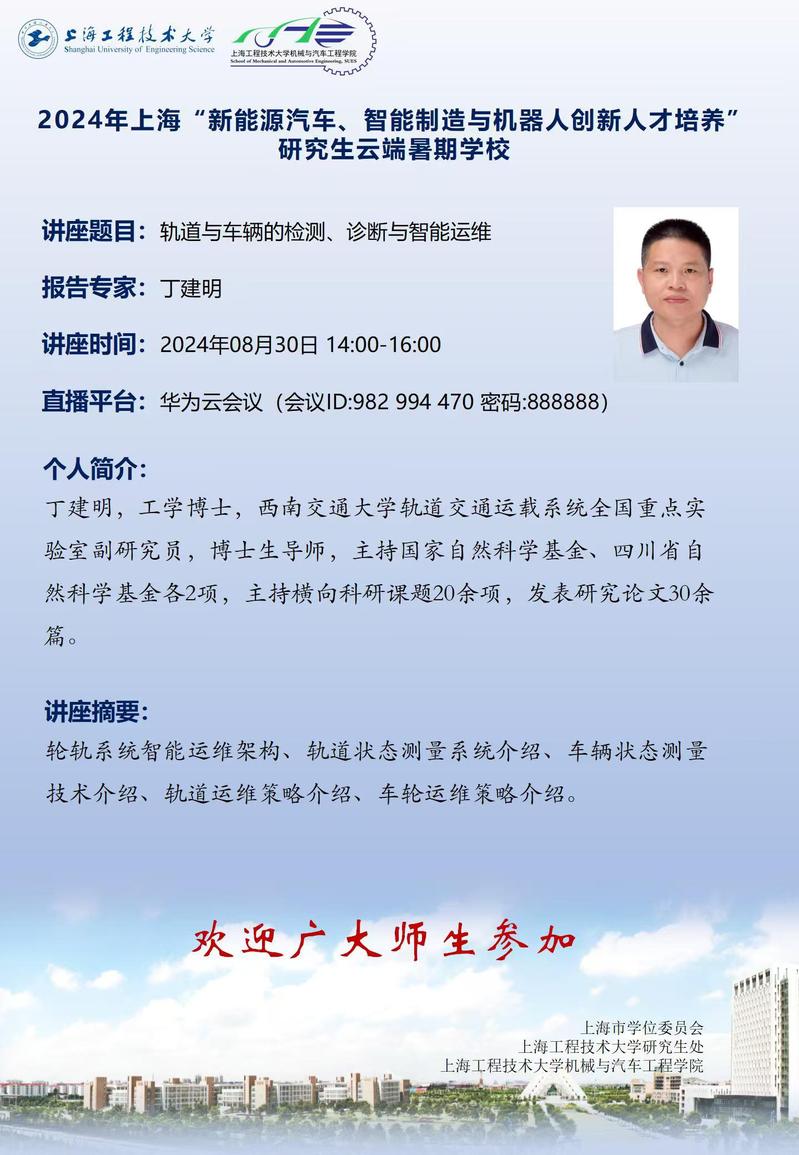 研究生云端暑期学校讲座预告——《轨道与车辆的检测、诊断与智能运维》