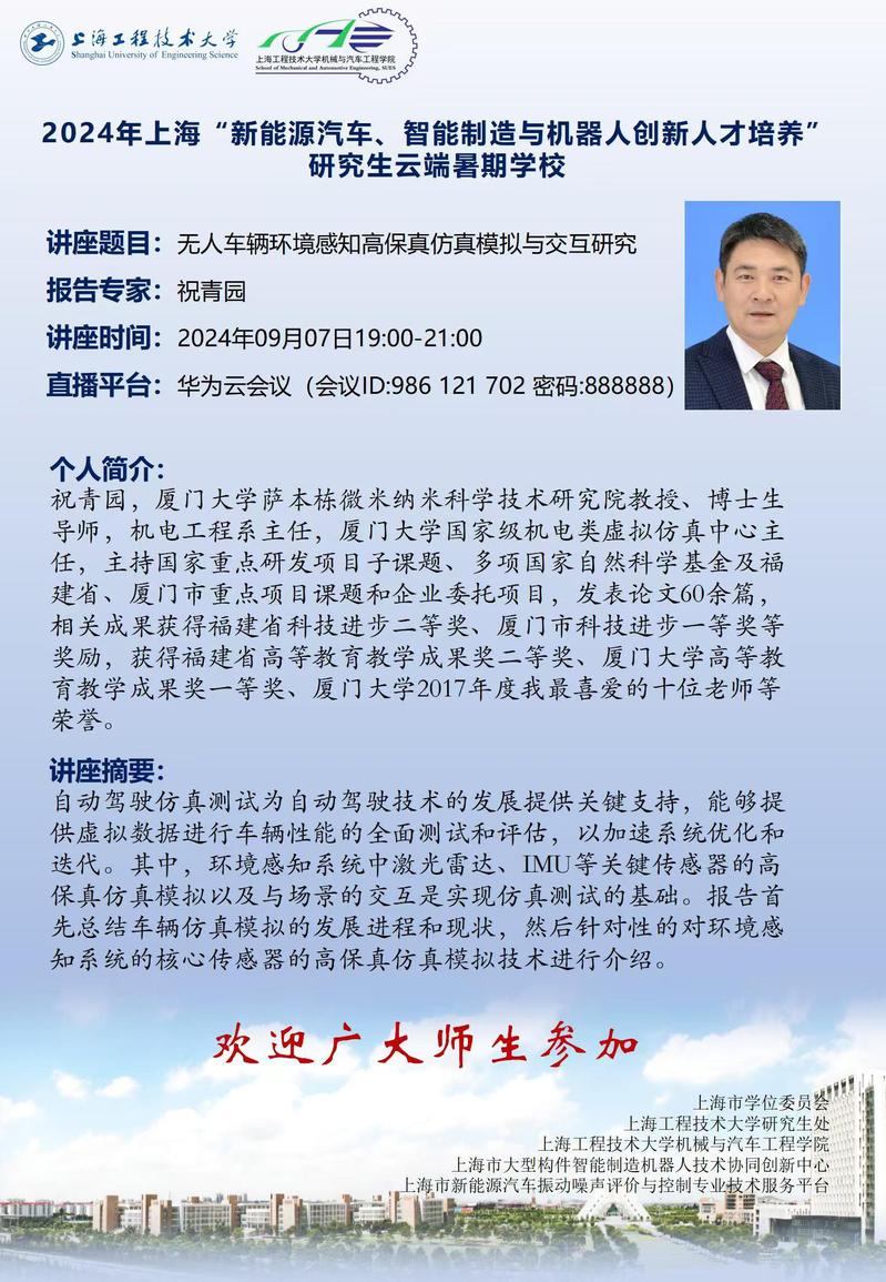 研究生云端暑期学校讲座预告——《无人车辆环境感知高保真仿真模拟与交互研究》