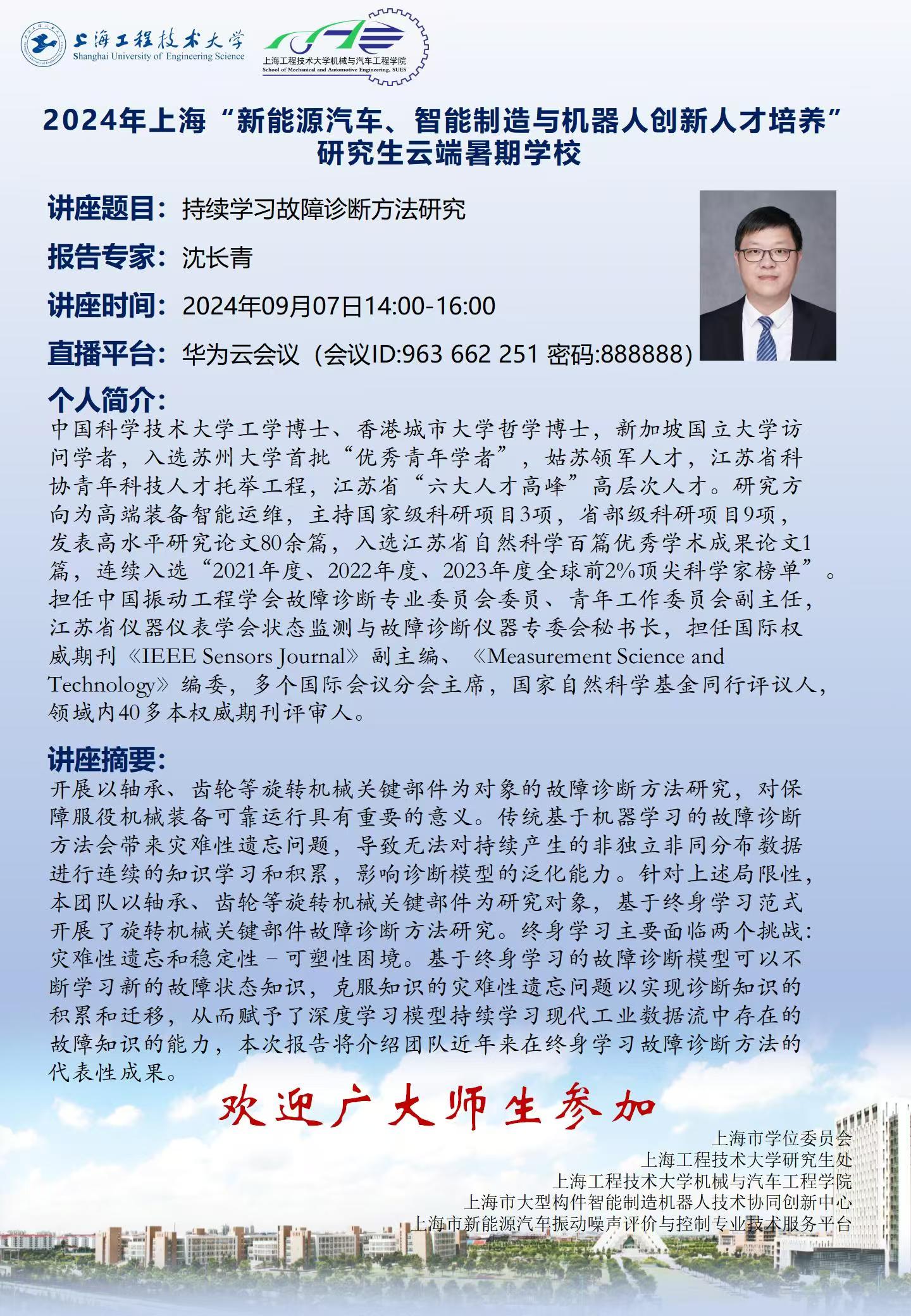 研究生云端暑期学校讲座预告——《持续学习故障诊断方法研究》