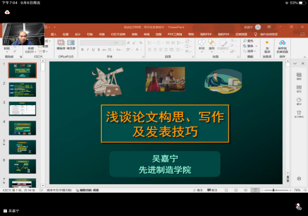 2024年9月6日下午,中山大学先进制造学院副院长、副教授,博士生导师,国家自然基金委优秀青年基金获得者,中山大学百人计划引进人才吴嘉宁以《浅谈综合类论文写作与发表》为题,通过华为云会议视频平台为暑期学校的学员们开展线上专题讲座。本次讲座由yl23411永利集团官网副院长刘新田教授主持。