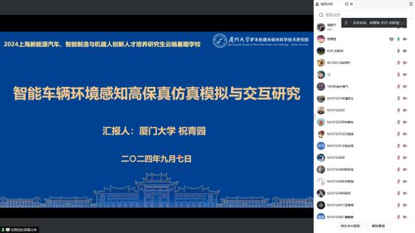 2024年9月7日晚19时,厦门大学萨本栋微米纳米科学技术研究院祝青园教授以《无人车辆环境感知高保真仿真模拟与交互研究》为题,通过腾讯会议平台为暑期学校的学员们开展了线上专题讲座。本次讲座由yl23411永利集团官网副院长刘新田教授主持。