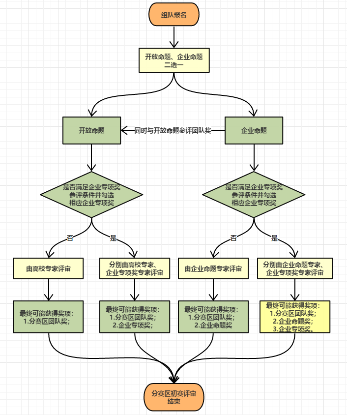 1.竞赛分为两级评审,包含分赛区初赛评审和全国总决赛评审。