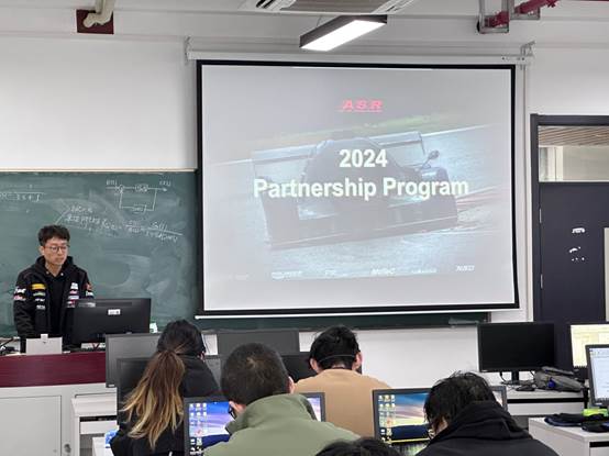 周峰总监结合丰富的工作经历,围绕国际新能源赛车制造技术路线、关键技术和应用模式三个方面开展了启发式教学。首先,周总监通过介绍ASR赛车发展历程及发展过程中出现的问题,引出主题;然后,通过分析赛车的发展趋势,分析了新能源汽车的技术发展路线与趋势与赛车发展的新场景;最后,结合新能源赛车发展的新模式,提出了对在校大学生的期望,激发了同学们的学习热情。