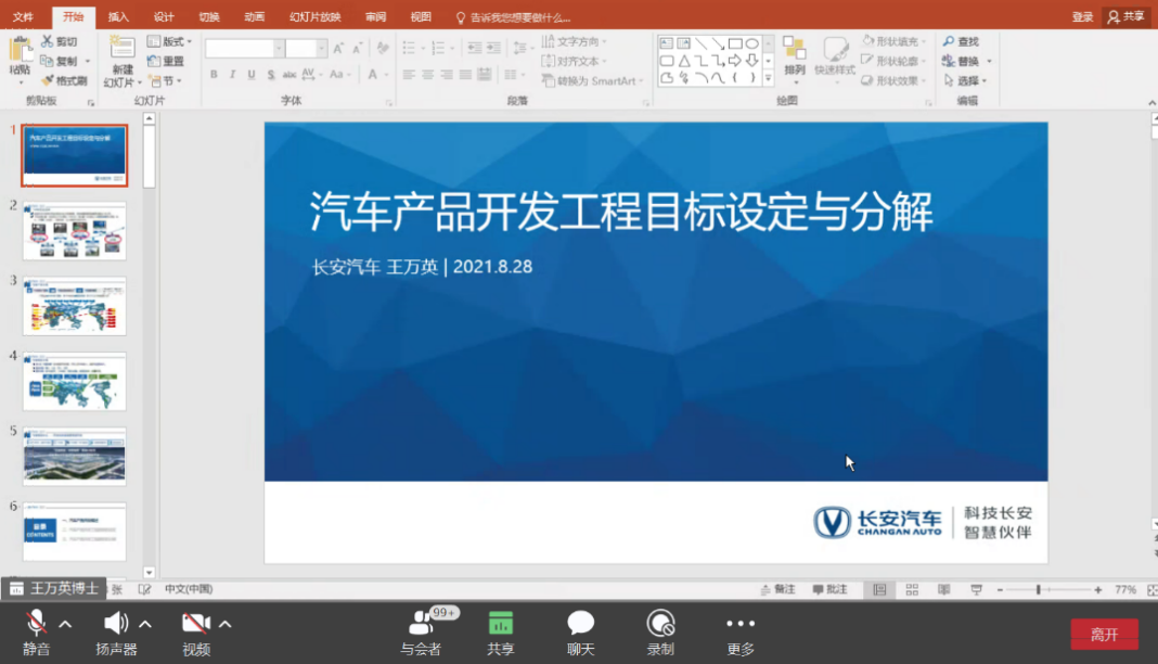 2021年8月28日14:00-16:00,通过华为云会议视频平台,长安汽车工程研究总院试验经理王万英为暑期学校做题为《汽车产品开发工程目标设定及分解》的线上专题讲座。讲座由yl23411永利集团官网副教授任洪娟主持。