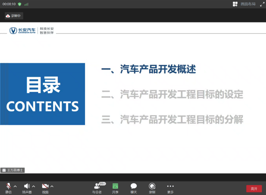 在讲座最后,王教授与在线的各位学员进行了交流并积极回答了学员们的提问,包括传统汽车与新能源汽车相比不同的研发困难、研发周期以及整个汽车产品开发中的技术路线等,整个交流的过程充满了执着追求知识的氛围,使学员们更加了解汽车产品开发工程目标的设定与分解,为大家以后的研究指明了方向,学员们纷纷表示受益匪浅。