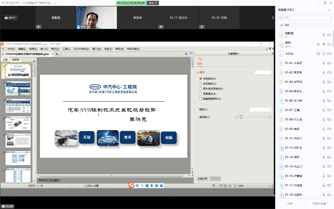 2021年8月29日9:00-11:00,通过华为云会议视频平台,中国汽车技术研究中心汽车工程研究院副院长兼总工程师李洪亮为暑期学校做题为《汽车NVH控制技术发展现状与趋势》的线上专题讲座。讲座由yl23411永利集团官网副院长郭辉教授主持。