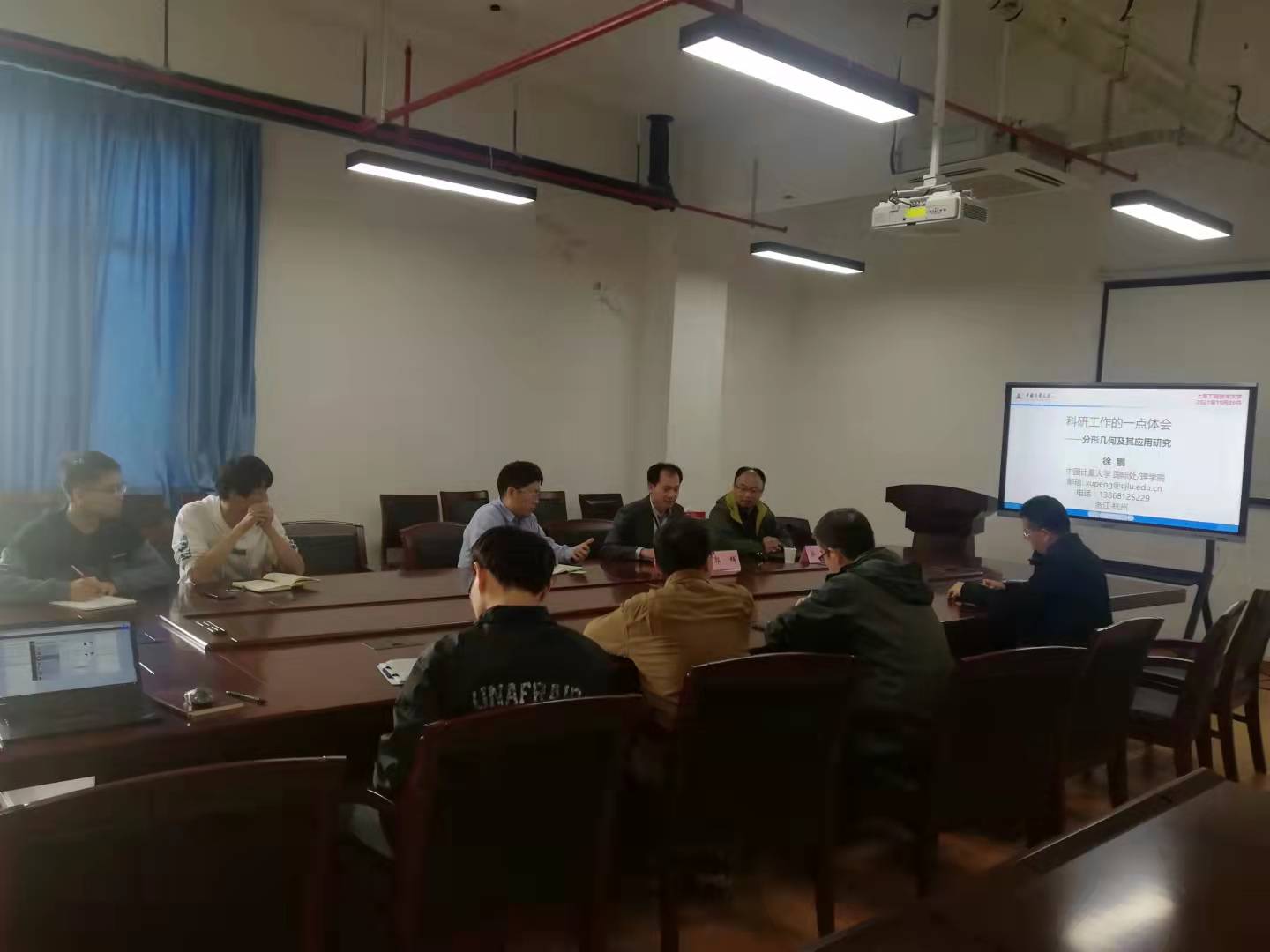 郭辉副院长对徐教授作了个人简介并对研究生培养工作进行了交流。徐教授研究方向为多孔介质传热传质、分形几何、计算流体力学及污泥脱水干化等,主持国家自然科学基金面上项目等省部级以上项目7项,发表期刊论文60余篇,3篇一作论文入选ESI高被引论文,是浙江省杰出青年基金获得者,出版专著2部,授权发明专利3项,获得教育部自然科学二等奖等。徐教授结合自身丰富的学术工作经历,为我们讲授了一场内容充实、带有启发性思维的讲座。