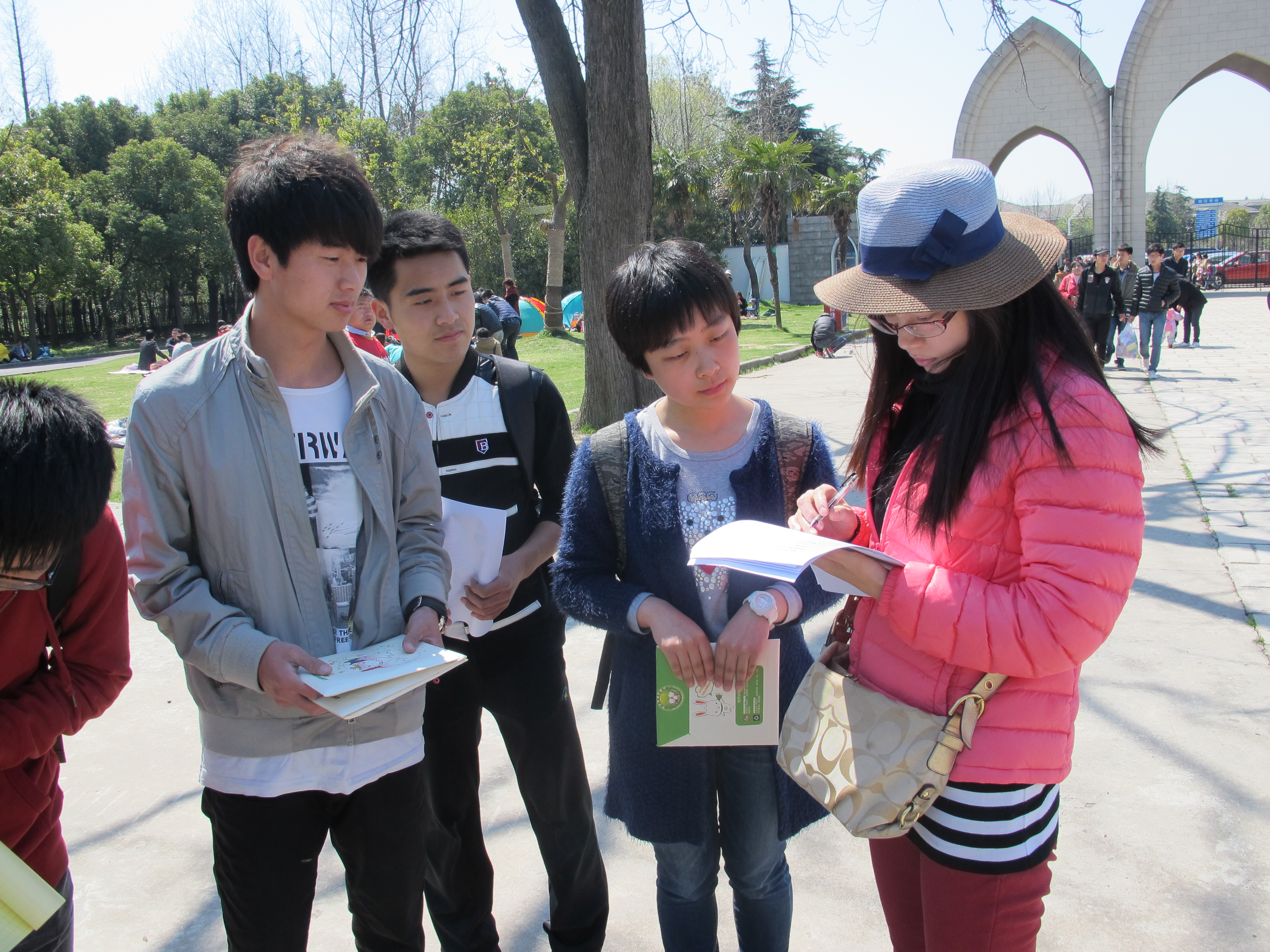 接力第一站是立信会计学院,接下来分别是上海视觉艺术学院、上海对外经贸大学、上海外国语大学、东华大学、上海工程技术大学,以及最后的华东政法大学。在华政的集结与拍照留恋后,大家就向各自的目的地进发了。我们工程大的绿茵社来到了佘山森林公园,展开了我们本次的主题活动:“世界水日,中国水周”。绿茵社的成员们向公园门口的市民征集了签名,对公益给出一份支持,让公益更有意义。还有提前设计并准备好的关于节能环保的调查问卷,相信可以给大家更多的启示。本次活动有不少的小朋友也参与其中,很多家长也乐意让小孩子来参与这样的活动,通过耳濡目染来感受绿色环保,来传递我们的正能量。