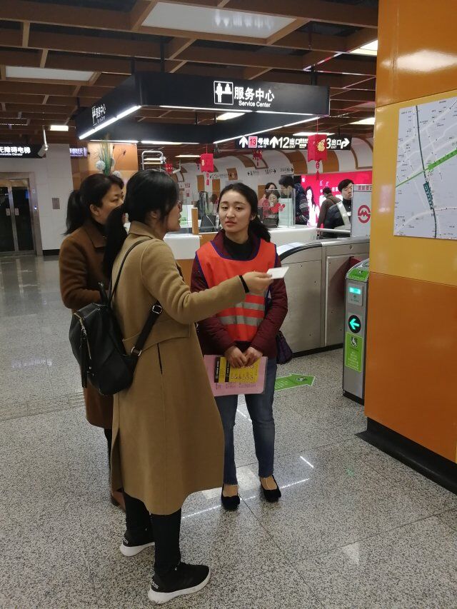 3月4日,机械工程学院的志愿者们来到了南京西路地铁站,协助地铁站的站长及工作人员为乘客们提供服务,主要职责是帮助乘客使用查询自动售票机购买地铁车票、指导外来旅客如何乘坐地铁到达目的地,引导乘客顺利通过闸机口。志愿者用真挚的热情对待群众,耐心细致地对乘客进行讲解。大家积极主动、微笑服务,以真诚友好的态度为出行的乘客带去了温暖的关怀、贴心的服务。