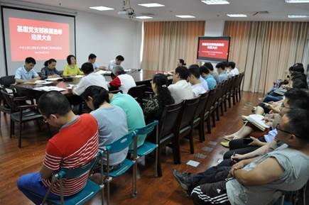 7月4日各党支部分别召开换届选举党员大会。大会在庄严的国歌声中开始,上一届党支部书记作委员会工作报告,对任期内的工作进行全面回顾和总结,肯定成绩、总结经验、找出问题,明确今后的努力方向。