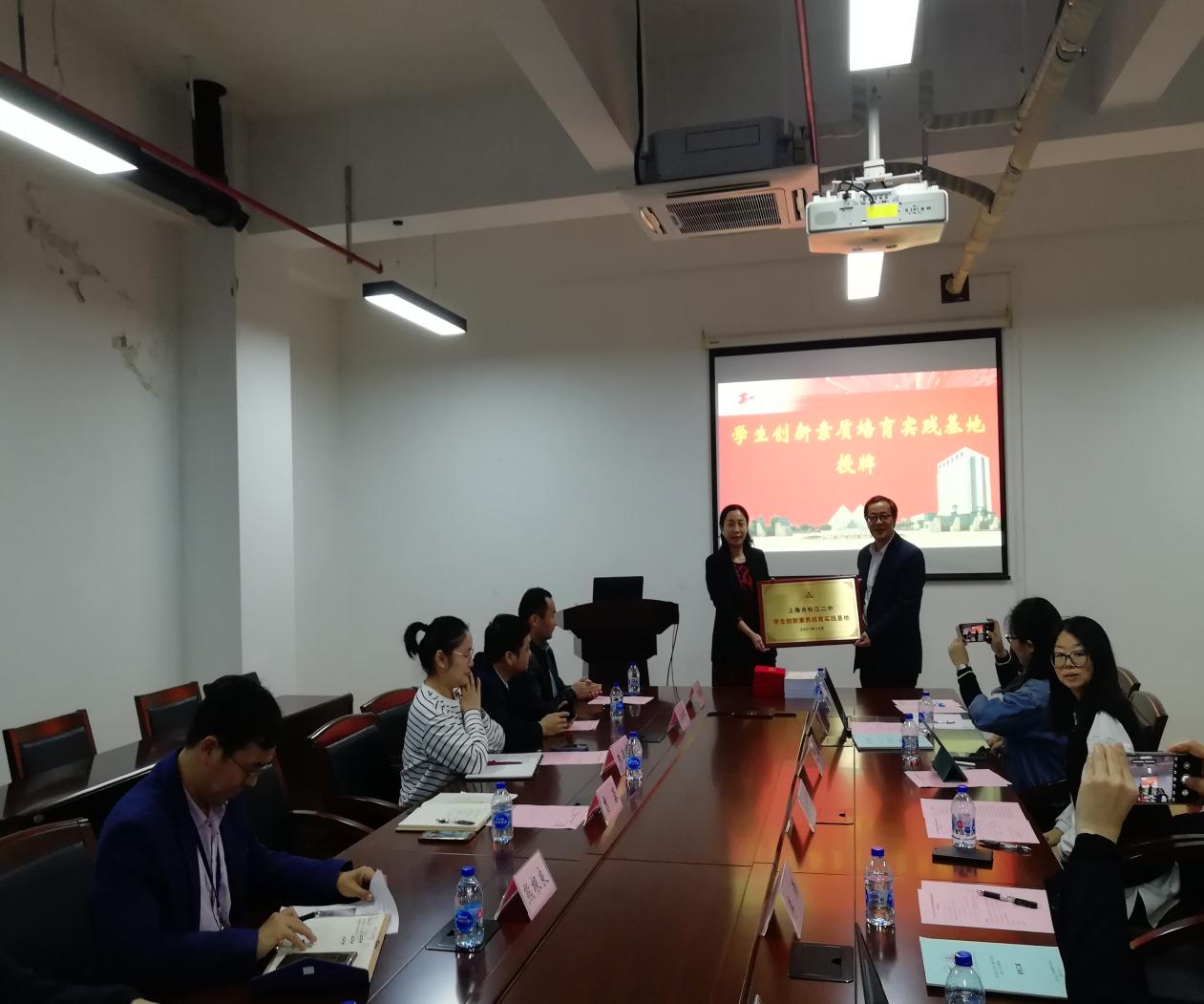 随后,由松江二中副校长余方喜向机汽学院党委书记进行学生创新素质培育实践基地授牌,并向机电系部分教师代表颁发聘书,聘请他们参与松江二中学生创新素质培育实践(ESAIS跨学科课程)指导。