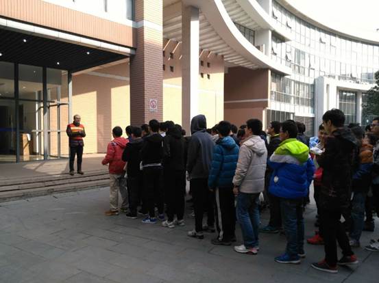 为进一步强化消防安全教育,提高师生火场应急逃生和自我防范能力,129日上午,学院在实训楼4号楼举行消防疏散逃生演练。本次演练目的即“珍爱生命、远离火灾”。学校保卫处相关人员现场指导同学们如何逃生疏散、应急救援等,学院实验室教师参与了演练的引导疏散指挥工作。整个演练活动组织严谨,紧张有序。参加演练的同学严肃认真,服从指挥,不抢先、不推搡、不拥挤,没有发生推、拉、拥、 挤等现象。集合完毕后各班班长迅速清点人数并向现场总指挥汇报。从下达命令演练开始到最后一名同学疏散、 到安全集中点,仅用了 250秒。