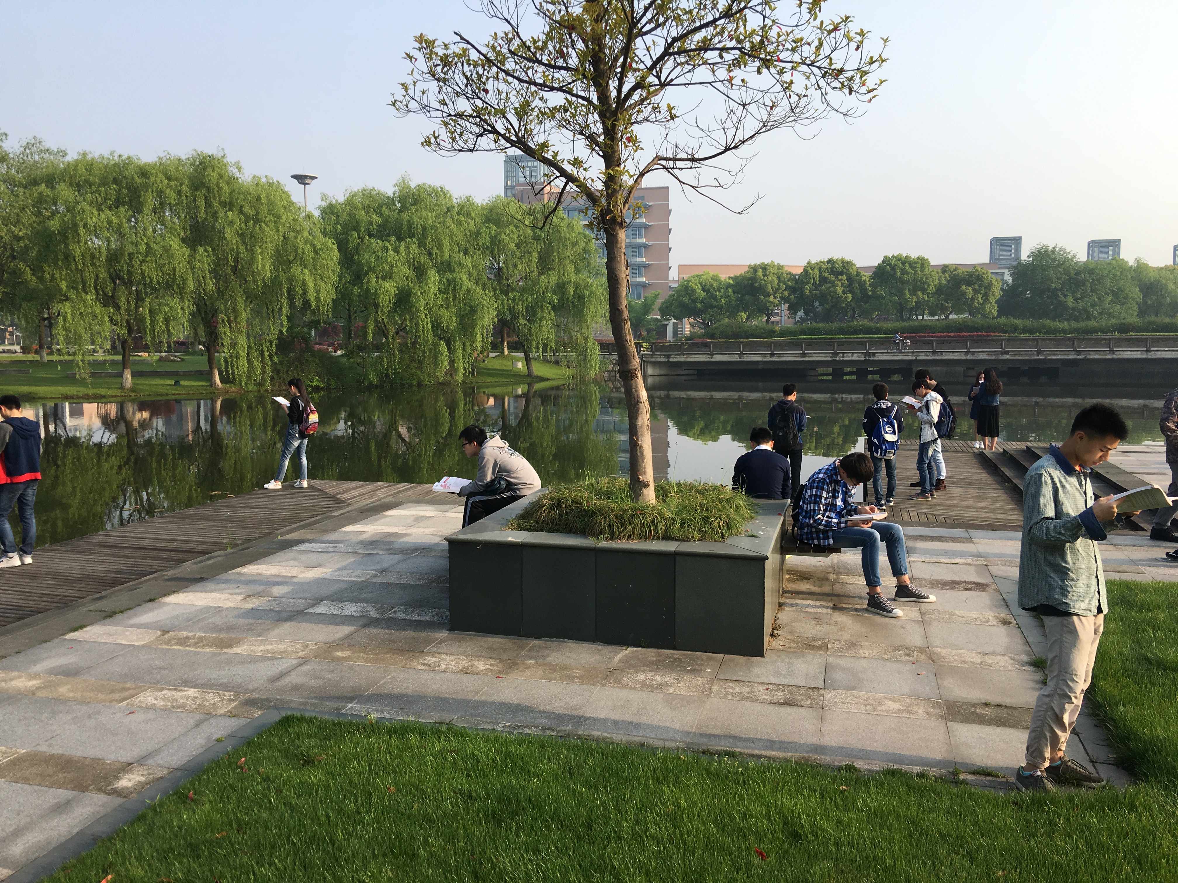 此次活动通过线下和线下联动方式大力宣传,共吸引来自全校近百名同学参加。每位报名参加晨读活动的同学均能准时抵达晨读地点,拿着各种早读材料自觉在花坛旁、教学楼前、池塘旁、凉亭里、草坪上进行晨读,他们早读的模样在校园内形成了一道最独特的风景,朗朗的读书声奏响了校园内最动听的乐章。
