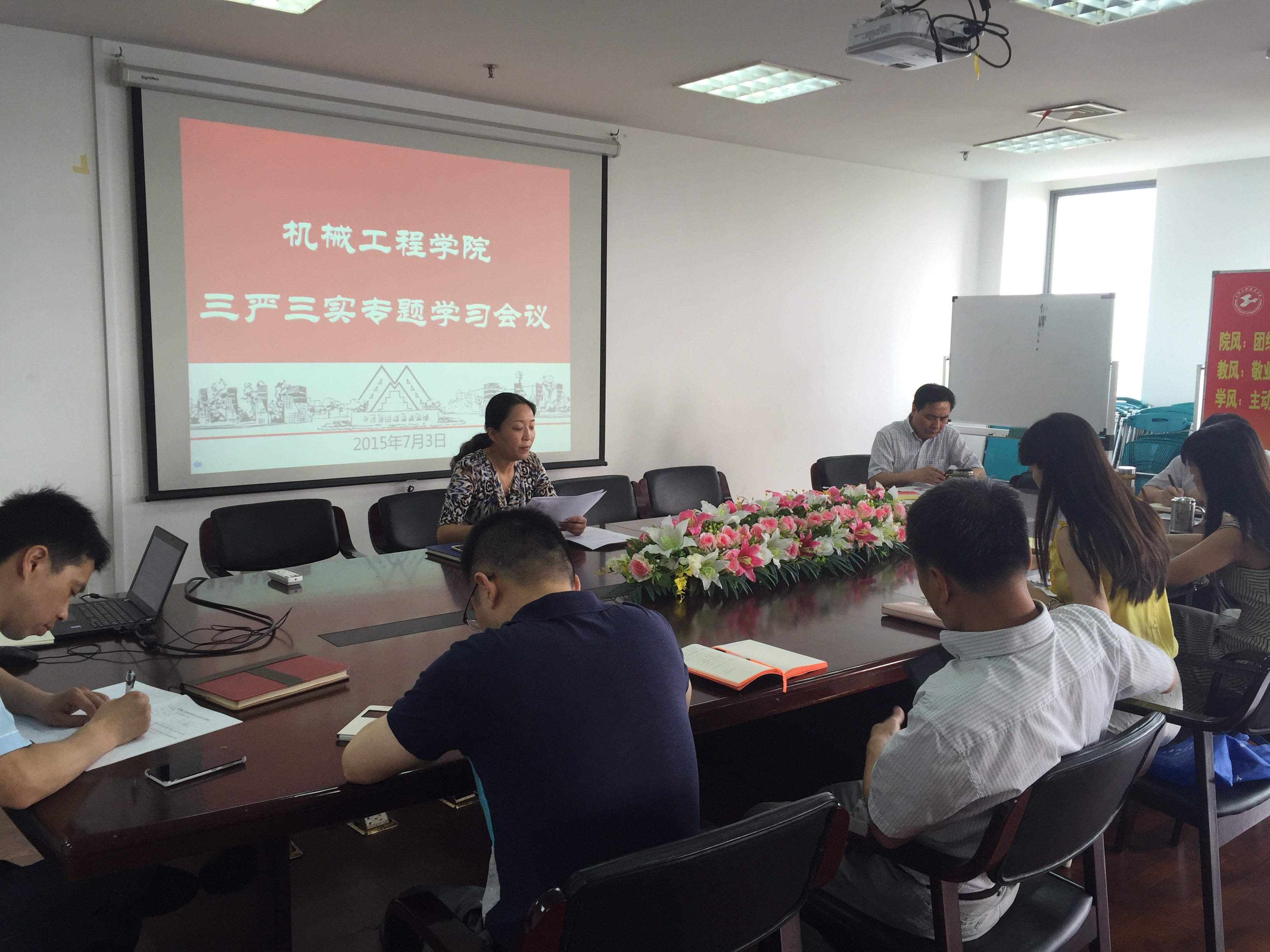 为纪念中国共产党成立94周年,对“三严三实”学习工作进行布置和推进,7月3日上午,机械工程学院在会议室召开了“三严三实”专题学习研讨会,学院党政领导班子成员、党委委员会成员出席会议。