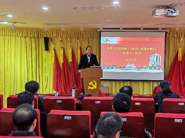 学院邀请了资深教师陆文老师为青年教师作了“如何让授课更精彩”的讲座,陆文老师作为一名执教37年的资深教师,他的课程一直深受学生喜爱,也得到各专家督导的一致好评。陆文老师从上课前的精心准备、授课过程的把控力以及课后反思三个方面讲述了如何上好一门课程,同时他指出教学的过程是培养学生理念转变、精神塑造、方法选择、能力提升的过程,作为教师应坚持立德树人根本任务,让课堂教育树牢学生敬业精神、善于独立思考、学会分析问题的方法,更提升解决问题的能力。