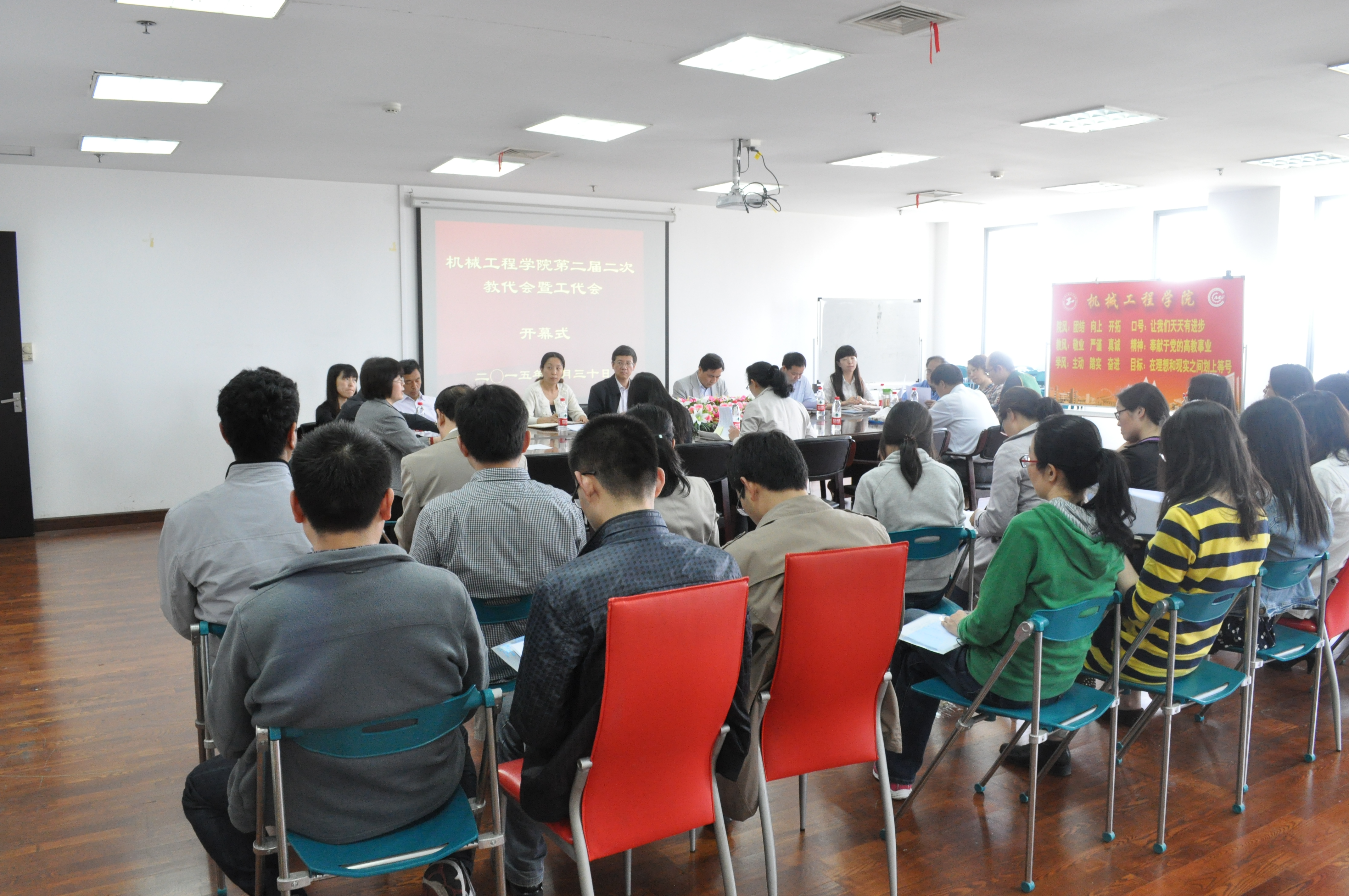 为加强学院民主管理,不断推进学院二级管理和现代大学制度,推进政治文明建设,机械工程学院二届二次教代会暨工代会开幕式于4月30日在行政楼1208会议室举行。学校副校长程维明出席会议,学院领导班子成员、全体教代会代表参加会议,会议由学院工会主席周玉凤老师主持。