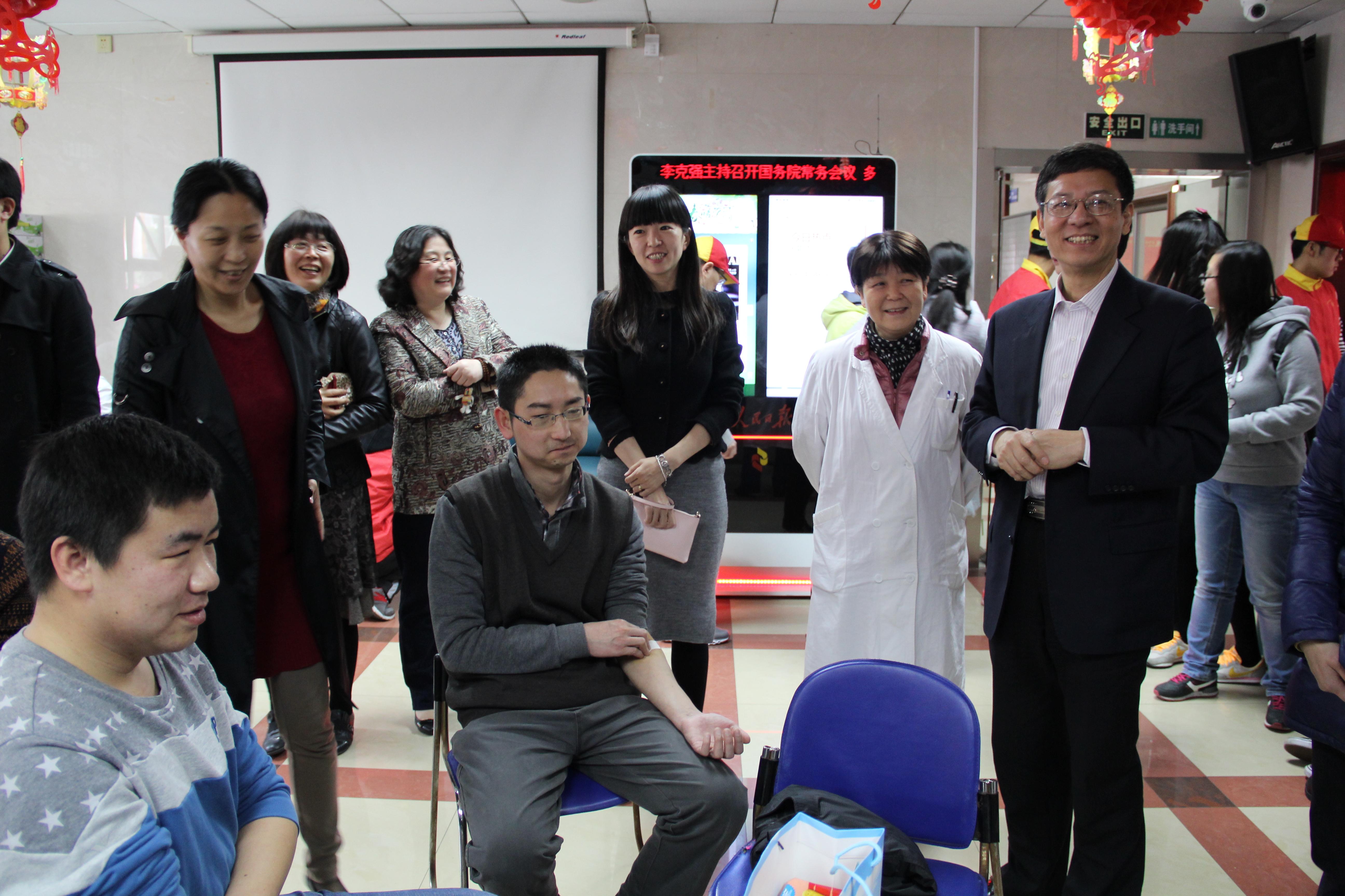 下午1点,同学们在血站工作人员和学院志愿者的组织下,有序的开始体检和采血。副校长程维明,机械工程学院党委书记虞蓉、副书记梅元媛老师亲临献血现场,关心慰问无偿献血的同学。辅导员老师始终在现场守候,叮嘱大家多注意休息并补充营养,勉励同学们勇敢面对。