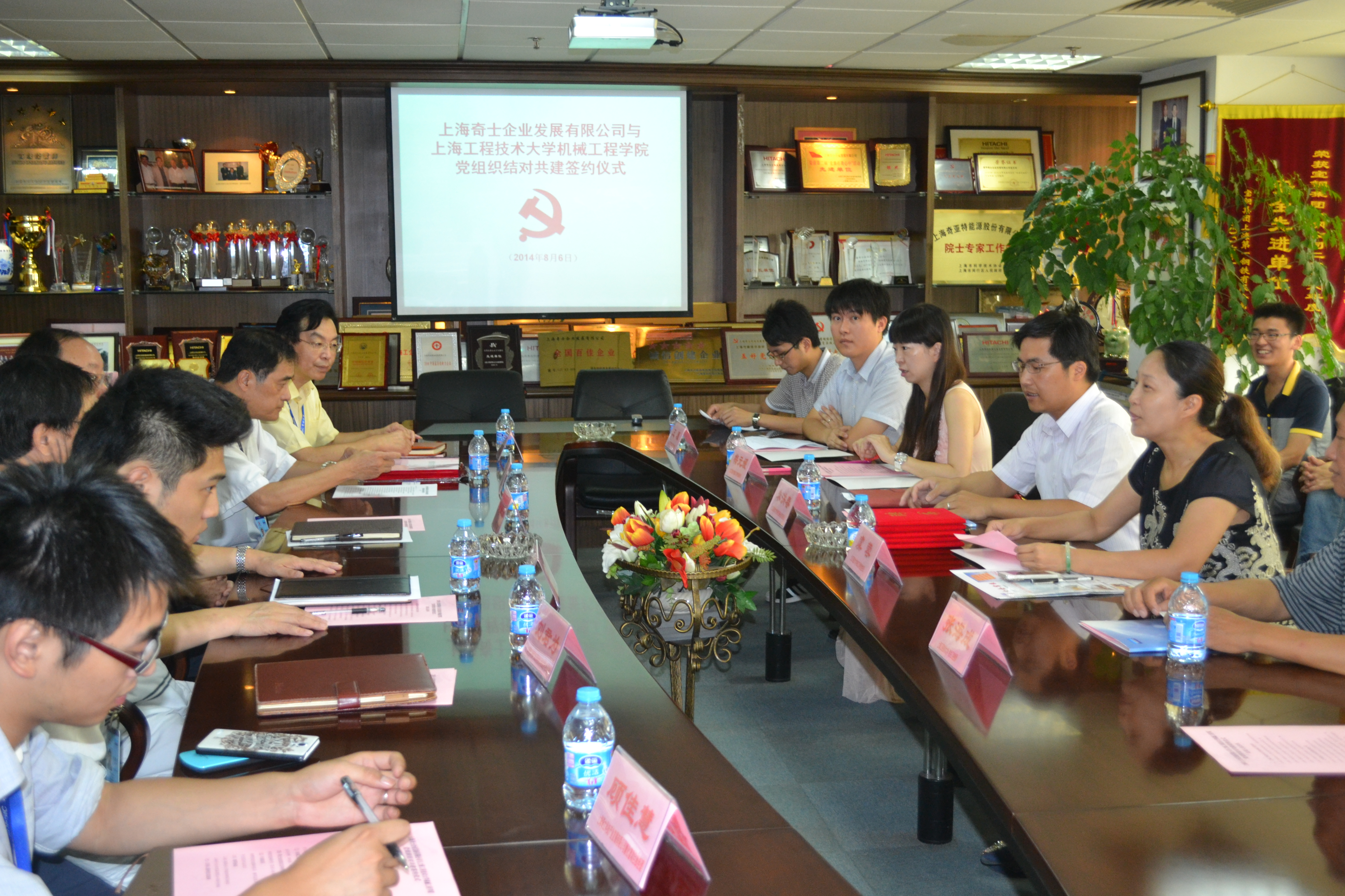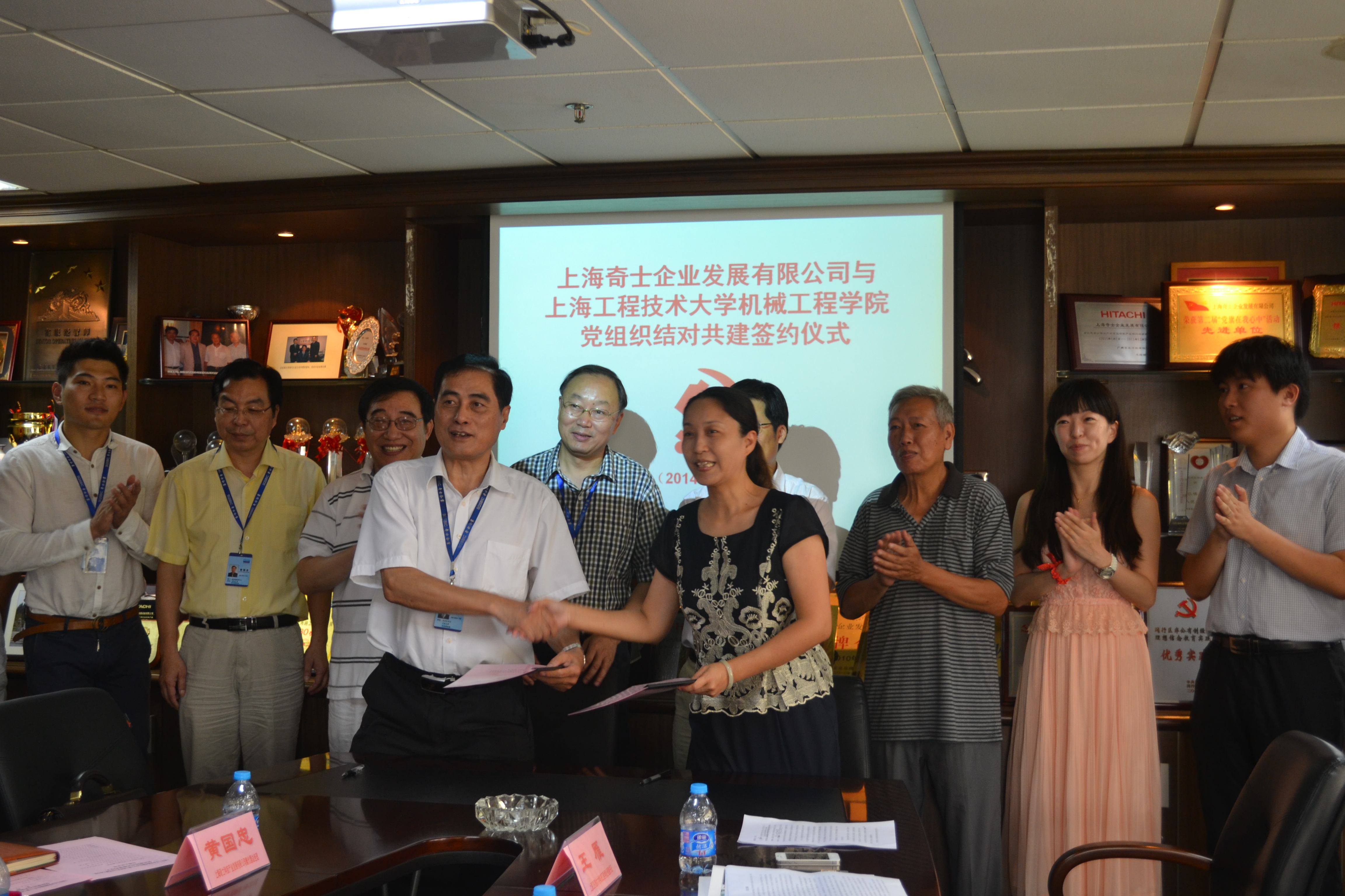 为深入贯彻落实科学发展观,促进建设“学习型、服务型、创新型”党组织,加强基层服务型党组织建设,提升党建工作科学化水平。8月6日上午,机械工程学院与上海奇士企业发展有限公司党组织结对共建签约仪式在上海奇士企业发展公司党员活动中心会议室举行。上海奇士企业发展有限公司总经理田海涛、公司党总支书记陈嘉昌、董事长秘书周政伟、上海科技产业发展公司孵化器总经理黄国忠、公司奇亚特中心党支部书记刘君为、公司孵化器项目部经理顾佳慧;上海工程技术大学党校常务副校长、组织部副部长朱洪春、机械工程学院党委书记虞蓉、学院党委副书记梅元媛、学院关工委委员张海成、学院学生科创党支部书记王雁、学生第二党支部书记汪文婷以及学院学生代表出席了签约仪式。仪式由奇士企业党总支书记陈嘉昌主持。