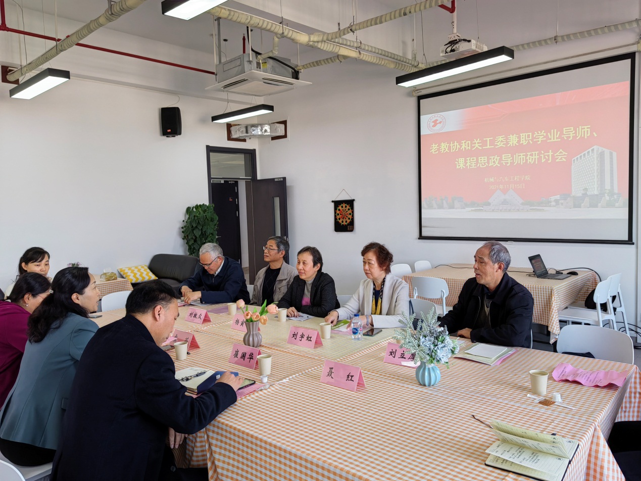11月15日,yl23411永利集团官网(以下简称“机汽学院”)在交通大楼8B605召开老教协、关工委兼职学业导师、课程思政导师研讨会。机汽学院党委书记虞蓉、院长崔国华、机汽学院老教协成员、教学督导办主任沙玲、青年教师代表徐斌等参加会议。研讨会由机汽学院党委书记虞蓉主持。