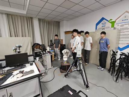 618日,“机器人性能测试与健康评估”课程邀请了国家机器人检测与评定中心高级工程师朱晓鹏开展课程实验讲解与专项指导。朱晓鹏围绕机器人性能检测核心模块,系统讲解了机器人运动学标定的模型构建原理,深化了同学们对机器人位置控制理论的认知,以及对机器人标定与位置测试的实际操作方法的理解。