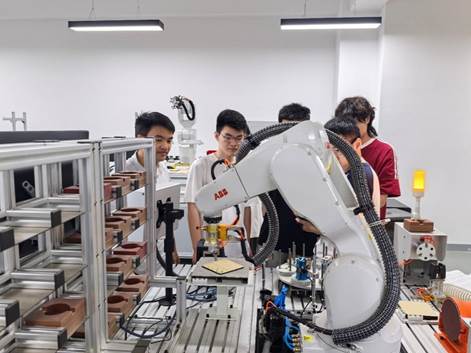 523日,“工业机器人综合实验”课程邀请了上海国诣机器人科技有限公司陈刚工程师对机器人实训过程进行指导。陈刚介绍了工业机器人结构以及整体机械和电气组成,并结合企业实际案例,向同学们展示了机器人示教编程方法,以及激光雕刻、码垛、打磨、视觉检测等功能的实际编程案例。通过工程师的编程示范,同学们迅速掌握了工业机器人编程的基本方法和典型应用。