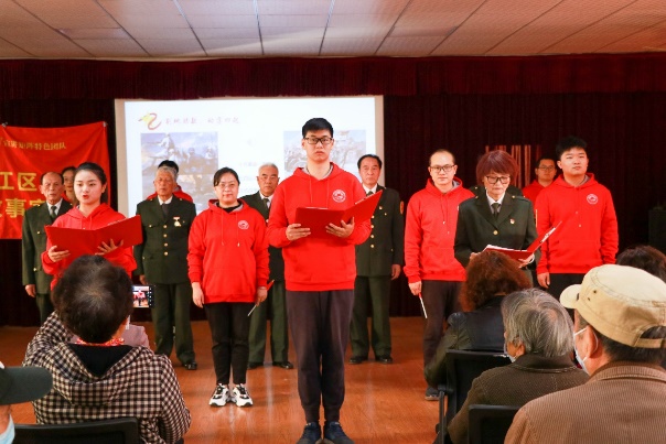 为认真贯彻落实“学史明理、学史增信、学史崇德、学史力行”的重要要求,创新育人模式、引导广大师生践行初心使命,让红色基因、革命薪火代代传承。11月20日下午,由松江老兵宣讲团和上海工程技术大学yl23411永利集团官网(以下简称“机汽学院”)青年红色宣讲团组成的基层宣讲队伍来到松江区荣乐社区居民委员会,为社区居民带来《听歌学党史 苦难续辉煌》现场宣讲活动,以讲唱结合的方式叙述了在中国共产党领导下近代中国从苦难走向辉煌的伟大征程。