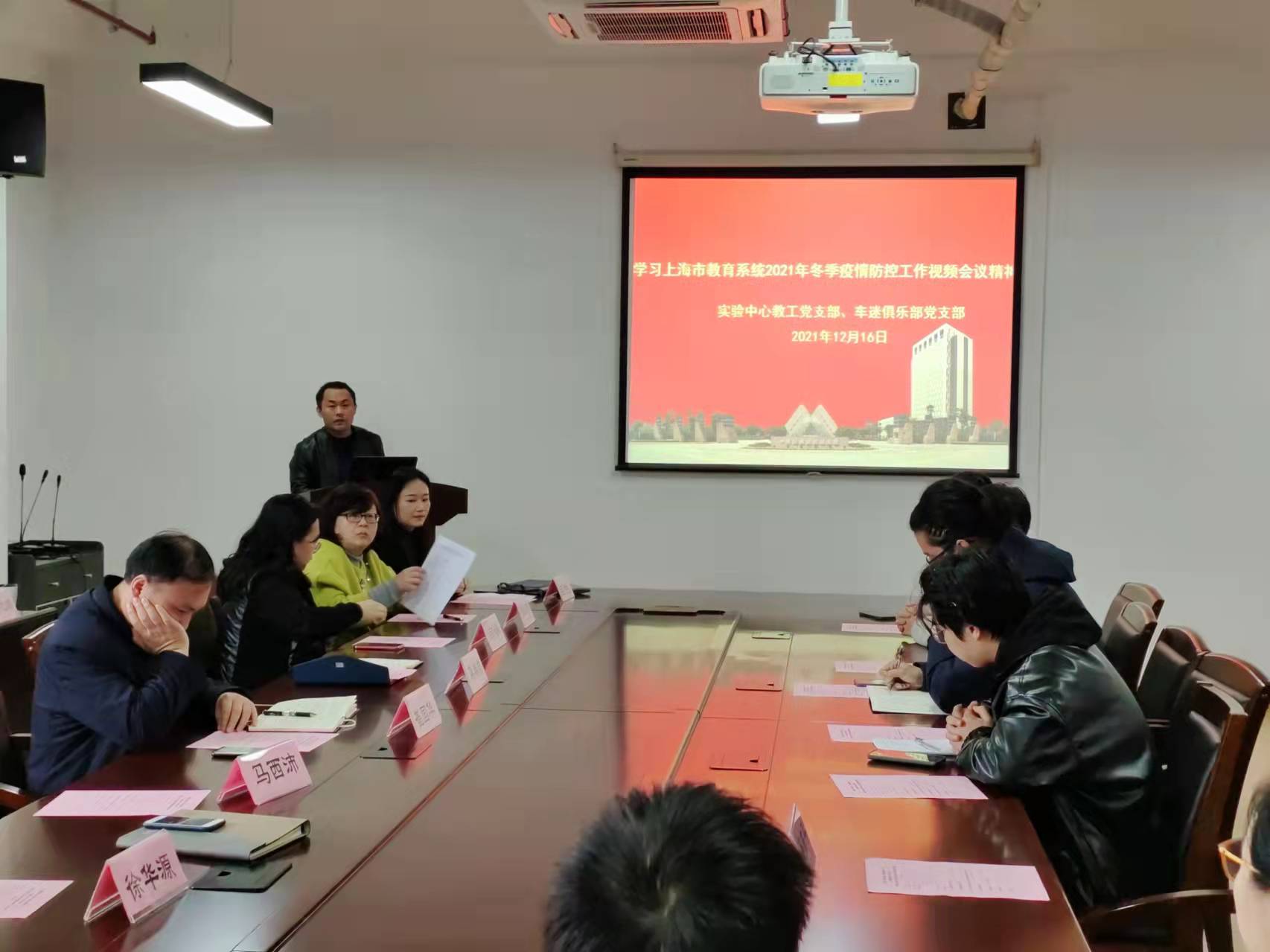马西沛老师带领大家学习上海市教育系统2021年冬季疫情防控工作视频会议精神,他传达会议精神说道:“(一)要以如履薄冰的警醒,充分认识当前疫情防控形势的严峻性、复杂性和不确定性。(二)要以恪尽职守的担当,毫不放松,慎终如始,抓好元旦、春节和冬季疫情防控。(三)要以连续作战的任务性,以快制快,事不过夜做好突发疫情的应急处置工作。