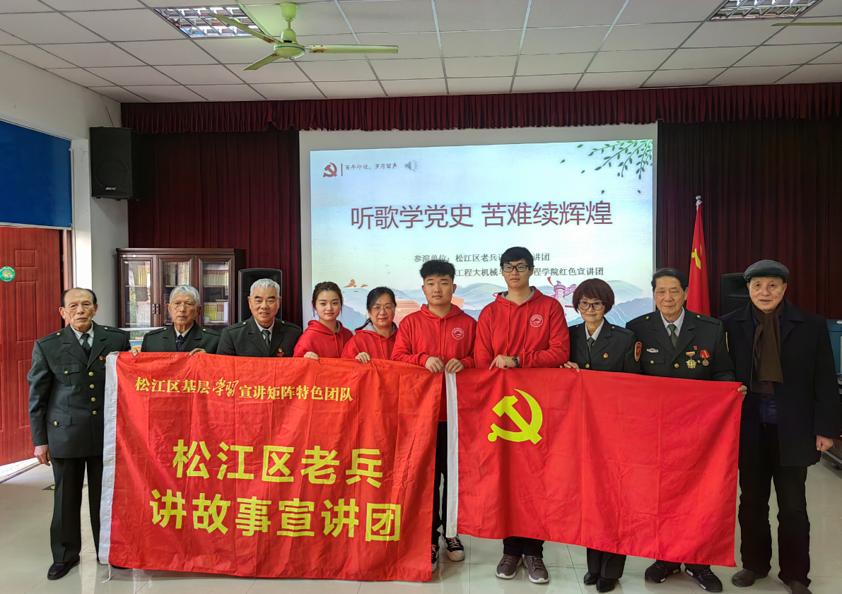 为继续把党史学习教育宣传引向深入,用好红色资源,引导全社会更好知史爱党,知史爱国。1月12日下午,由松江老兵宣讲团和上海工程技术大学yl23411永利集团官网青年红色宣讲团组成的宣讲队伍来到松江区西林塔居民委员会,为社区居民带来《听歌学党史 苦难续辉煌》现场宣讲活动,以诗朗诵+唱红歌的形式叙述了在中国共产党领导下近代中国从苦难走向辉煌的伟大征程。