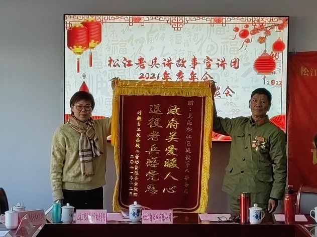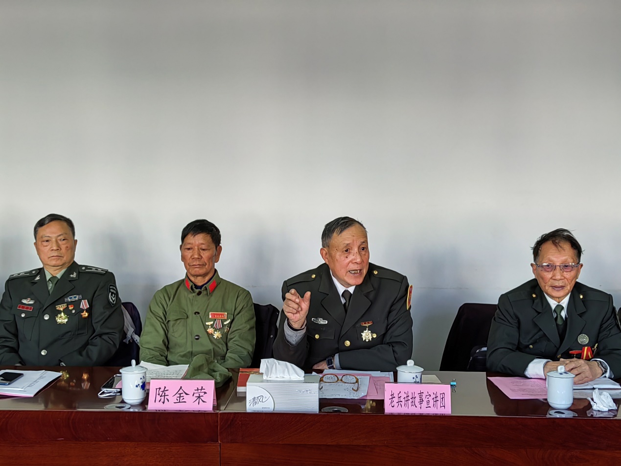 1月14日上午,松江区老兵讲故事宣讲团2021年度总结暨2022年迎春座谈会在松江区自来水有限公司一楼会议室隆重举行。参加此次会议的有区委宣传部、区委老干部局、区军人事务局、共青团松江区委、岳阳、永丰两个街道党建办负责人、区自来水有限公司经理徐玲华、对越自卫反击战二等功臣陈金荣以及松江区老兵讲故事宣讲团全体老兵。yl23411永利集团官网党委书记虞蓉应邀出席此次会议并讲话。会议由老兵讲故事宣讲团团长朱渭民主持。