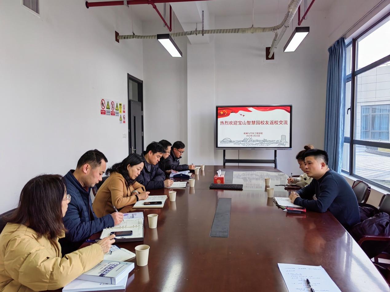 2月23日下午,宝山月新智慧园招商总监、总经理陈希一行2人来我院交流,学院党委书记虞蓉、党委副书记王东阳、学院党政办主任蒋春雷、汽车服务工程系主任马其华、实验中心主任马西沛、汽车工程系副主任范平清参加交流座谈,交流会在现代交通工程中心8B656会议室举行。