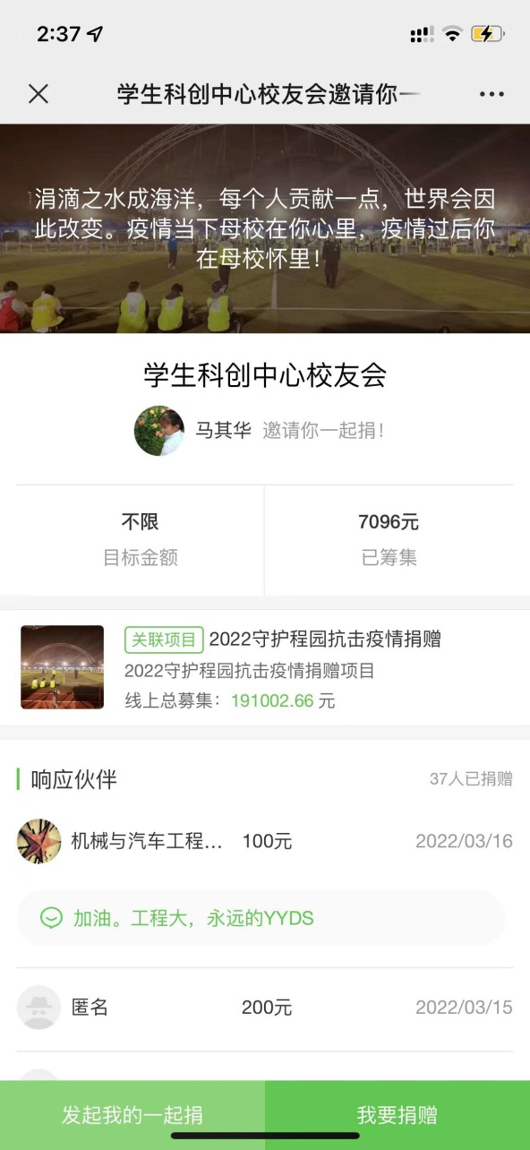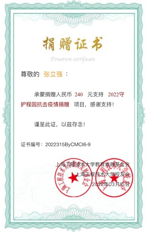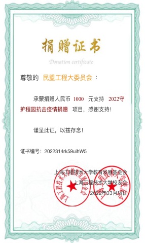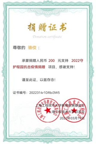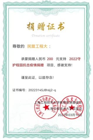 面对严峻的疫情形势,学校民主党派、统战团体第一时间响应,组织成员为学校抗疫贡献力量,成员纷纷响应号召,主动自愿向上海工程技术大学教育发展基金会捐款。民盟工程大主委、我院副院长张立强老师两次捐赠累计1240元,民盟盟员张美华老师捐赠 520元,民盟盟员、汽车服务工程系副主任骆佼老师两次捐赠累计400元,民盟盟员崔岩老师捐赠200元。学院木鸢机甲战战队师生校友们捐赠7781元;学生科创中心机械创新基地校友分会捐赠7096元,捐款达14877元,体现了学院师生的责任和担当。