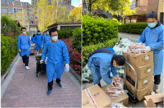 傅允准同志、沈骏同志在完成党员社区“双报到”后,一直未收到工作安排,于是便主动向居委会提出参与到社区的抗疫志愿活动中,在居委会的安排下,两位同志主要负责社区的物资分配及分发等,协助居委会同志共同做好民生保障工作。