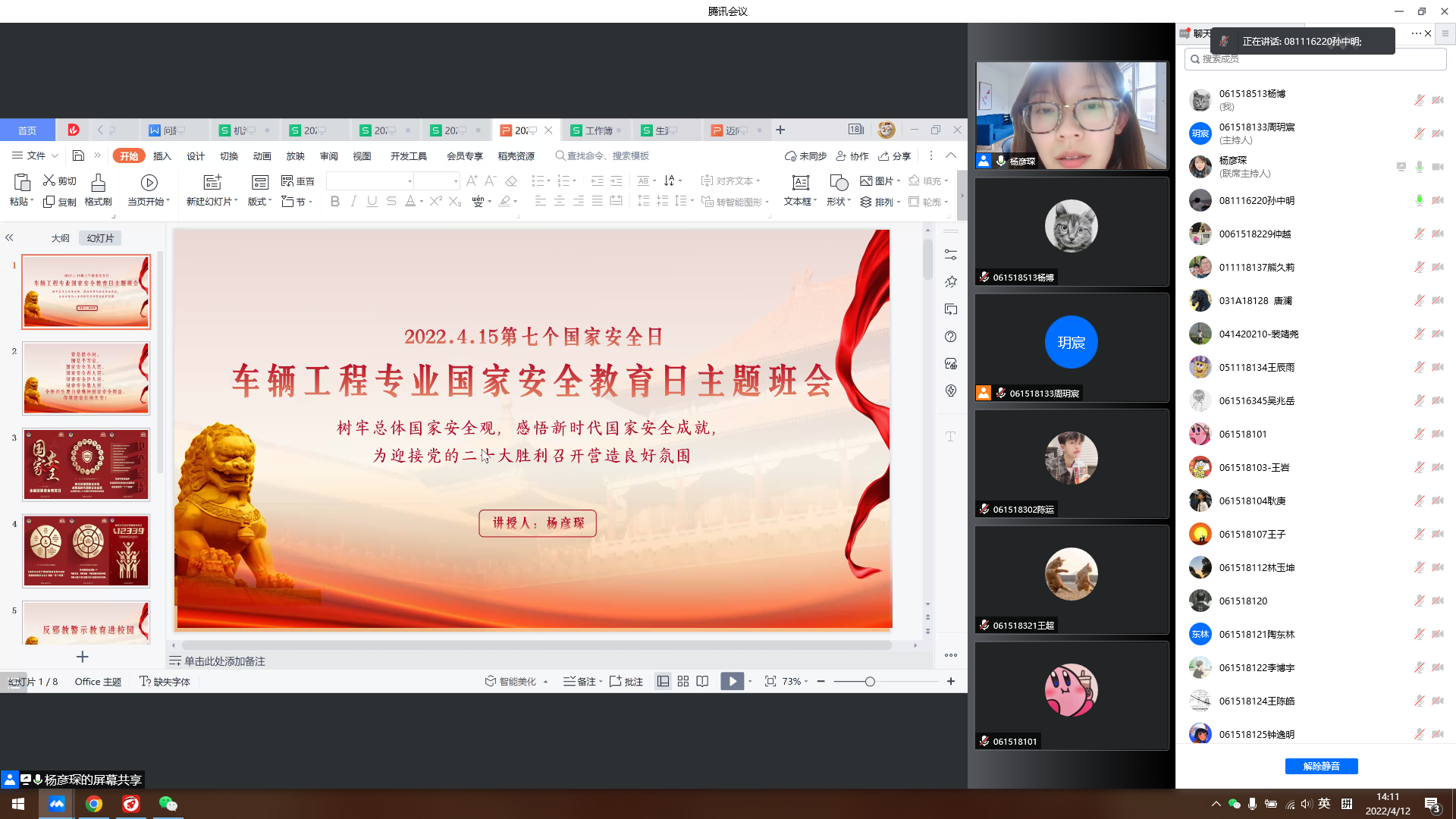 4月15日是第七个“全民国家安全教育日”。为深入学习贯彻习近平新时代中国特色社会主义思想,坚持总体国家安全观,着力防范化解重大风险,普及学生的国家安全意识,营造良好维护国家安全责任的氛围,yl23411永利集团官网组织学生“同上一堂国家安全教育课”,在学生群体中扎实开展国家安全宣传教育活动。通过中国大学生在线视频号、快手、抖音、B站、微博等平台,同学们在易班工作站、学生宿舍等场所,错峰观看学习了本次国家安全教育公开课。