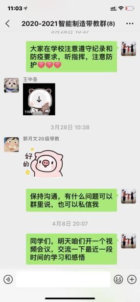 关心关爱带教学生。机械工程及自动化团队老师在疫情期间,定期积极主动联系带教学生,了解学生学习、生活情况及心理状况,耐心讲解当前的抗疫形势及抗疫防控规定等等,做好学生的心理疏导。