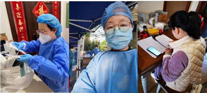 当教育系统招募核酸采样志愿者时,齐东平老师听到这个消息马上站了出来!她考虑到自己曾在父母的诊所耳濡目染,也被父母带教过医护相关实操,尽管这是存在较大风险的岗位,却在第一时间报名,加入到了核酸采样队伍,为人民服务无怨无悔。其实自3月29日小区封闭第一次核酸以来,齐老师就立刻报名成为了党员志愿者,一直奋斗在抗疫第一线,这次又积极报名为核酸采样志愿者,作为一个党龄33年的老党员,关键时刻冲到了最前面!