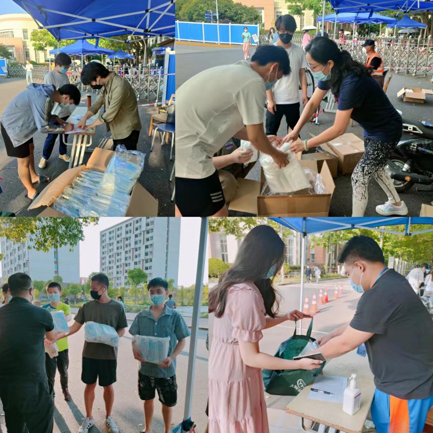 学院党委书记虞蓉4月29日进驻学校后,了解到学院在校师生急缺口罩的现实困境,全面动员学院资源,积极筹措防疫物资。上海奥奇科技发展基金会在得知此讯息后,积极与学院对接,采购了12000只口罩,第一时间组织力量运往永利集团官网。5月8日,学院全体驻校人员将口罩进行清点、分装,并高效组织楼层长进行分发,将口罩发放到了全院2734名在校学生手中。