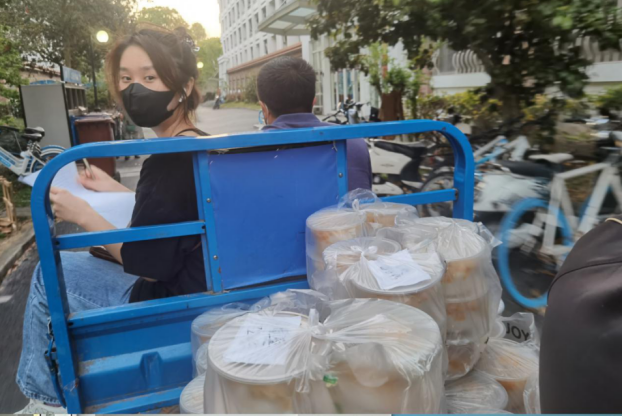 作为程园的一份子,勇于担当,召之能战。面对紧急情况,刘老师化身“大白”,整夜坚守在学生宿舍楼道里,守护着学生的安康,用实际行动共同保卫着程园;同学们足不出楼期间,化身“派送员”,坐上三轮车,逐楼逐栋为同学们送去餐食,笑着说一声:“同学,你的“外卖”到喽!”同学们连声道谢;社会各界的抗疫捐助与学校的慰问礼包分发工作中,刘老师化身“分拣员”,协调现场各楼层长领取分发给同学们的物资。让同学们真切地感受到来自社会各界及学校的关心关爱,也让他们更加懂得理解与感恩,共同为守护程园,打赢这场疫情防控阻击战而努力。