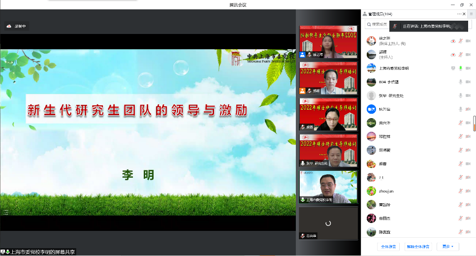 为进一步明确研究生导师职责担当,强化研究生导师立德树人的意识和责任,提升研究生导师指导水平,保证研究生培养质量和研究生教育工作的管理质量,6月23日yl23411永利集团官网邀请上海市委党校领导科学教研部(人力资源测评中心)副主任李明教授开展线上导师培训,本次培训会的主题是“凝聚团队力量、共同开创未来”。研究生处处长张华、学院领导班子、全体研究生导师参加了会议本次导师培训会,副院长郭辉主持会议。