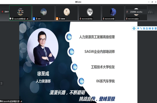 疫情影响,今年车辆工程专业学生无法进入企业现场实习,为切实提升疫情下课程教学质量,解决在线教学中无法实现实训、动手操作的难题,在学院的大力支持下,624日下午,上海汽车变速器有限公司(以下简称上汽变速器)人力资源部员工发展高级经理徐至成应邀为2019级车辆工程岗位实习的全体学生开展线上讲座。岗位实习企业联络人黄孝慈老师,岗位实习指导老师许莎、刘淼、杨超、赵永礼在线参加了讲座。