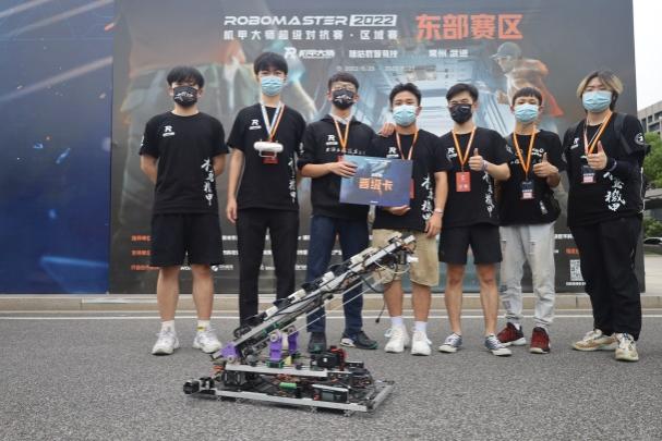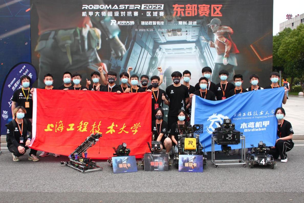 6月22日至6月27日,RoboMaster2022超级对抗赛•区域赛(东部赛区)在常州市武进区体育馆举行,来自东部地区40余所高校共53支队伍3千多名参赛队员参与此次区域赛并争夺国赛参赛名额。上海工程技术大学木鸢Birdiebot战队在学生科创中心机械创新基地负责人张春燕老师和教务处杨光老师远程指挥、技术指导张力骅老师现场指导和带领下凭借着堪称完美的机器人结构、精准的电控算法效果、出色的战术发挥、配合默契的团队协作打进东部区域赛8强并成功晋升全国赛。值得一提的是,战队在去年兵种完备的基础上,优化各兵种的稳定性和可靠性,今年新增单项赛角逐,在英雄吊射和飞镖打靶的单项赛中更是表现完美,尤其是飞镖打靶,凭借着精准的命中伤害率,成为东部区域赛成功晋升全国赛的两支队伍之一。三项国赛资格入场券诠释了木鸢机甲战队备赛一年的汗水和成效。